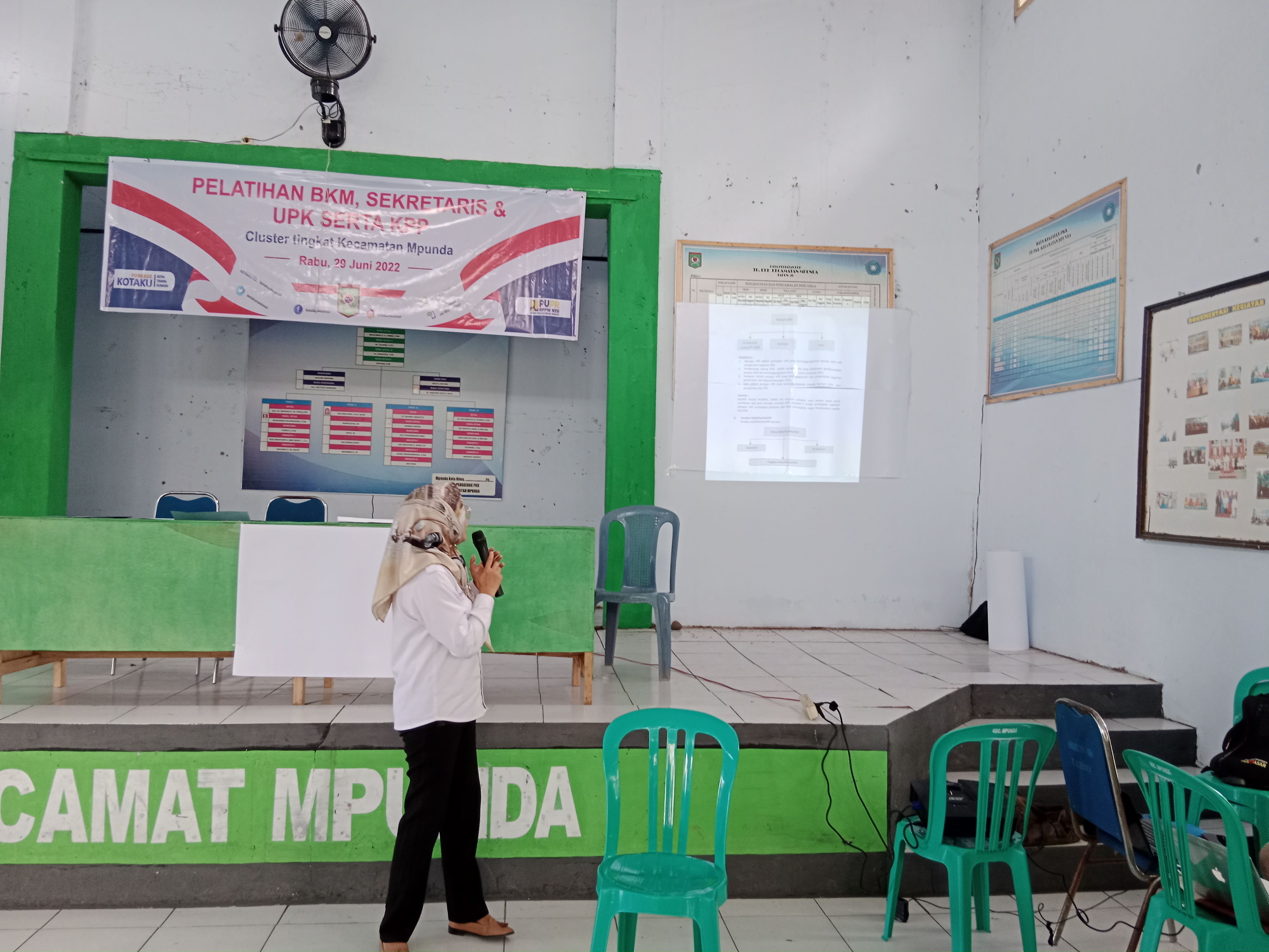 Sementara ditempat yang sama, Korkot Kotaku Kota Bima Sri Sumandari, ST berharap dengan pelatihan ini dapat menguatkan kelembagaan bagi semua BKM se Kecamatan Mpunda maupun BKM di Kelurahan lain.